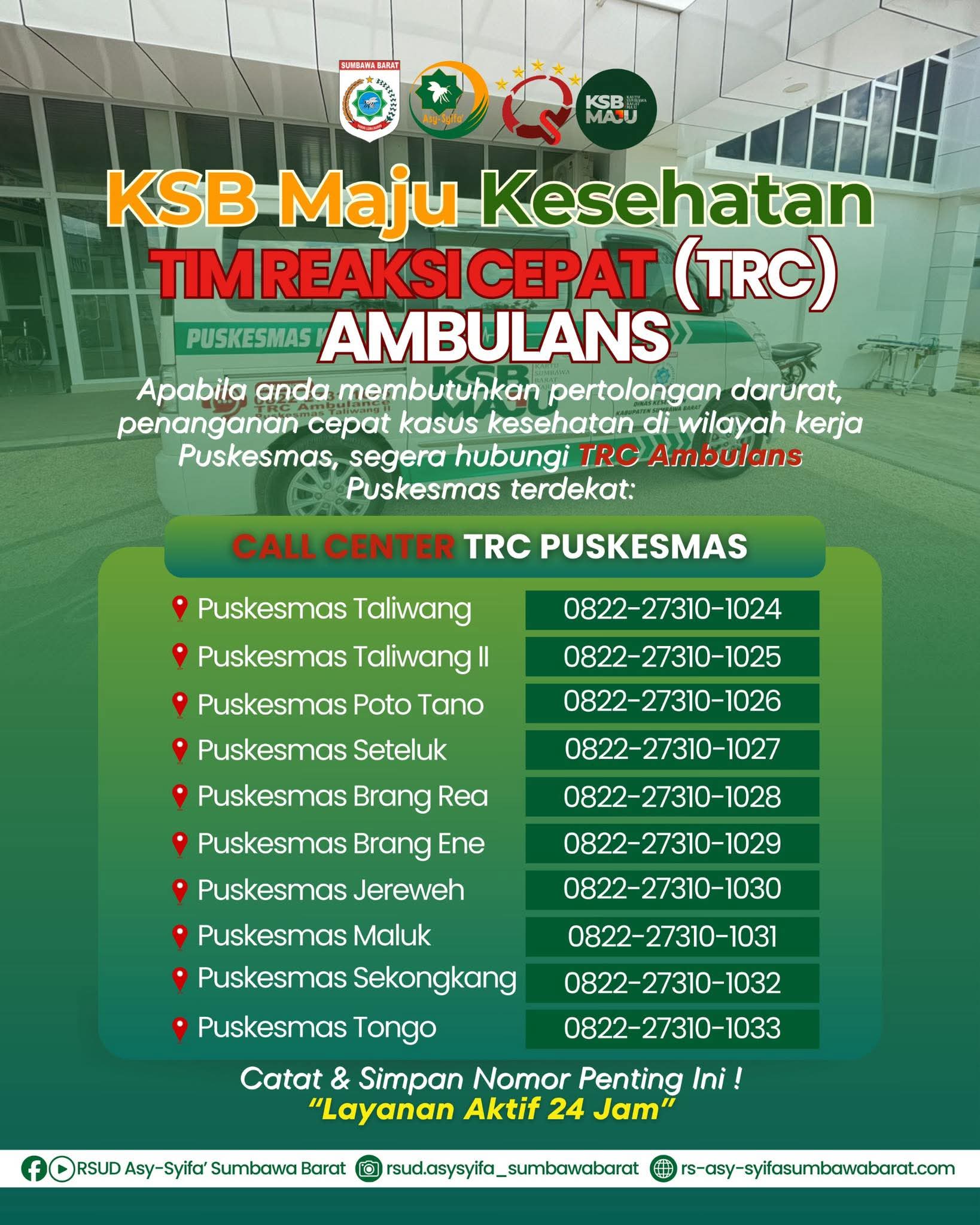 “Untuk memudahkan masyarakat mengakses atau mendapatkan layanan mobil ambulans, kami dengan menyebarkan nomor kontak yang dapat dihubungi melalui akses Rapi Care pada nomor 0812-2112-0330. Nomor itu sendiri siap melayani selama 24 jam,” kata Andy Suhaeri S.ST, MM.Inov, selaku Direktur RSUD Asy-Syifa KSB, Kamis, 18/9/2025.