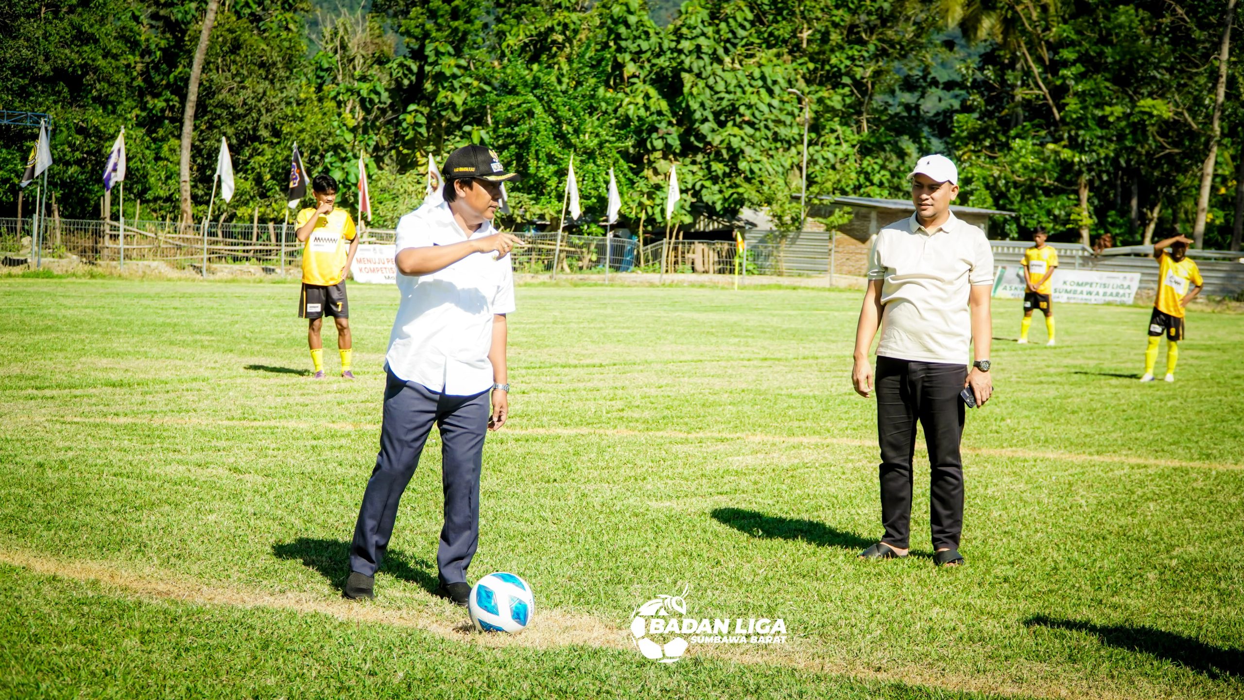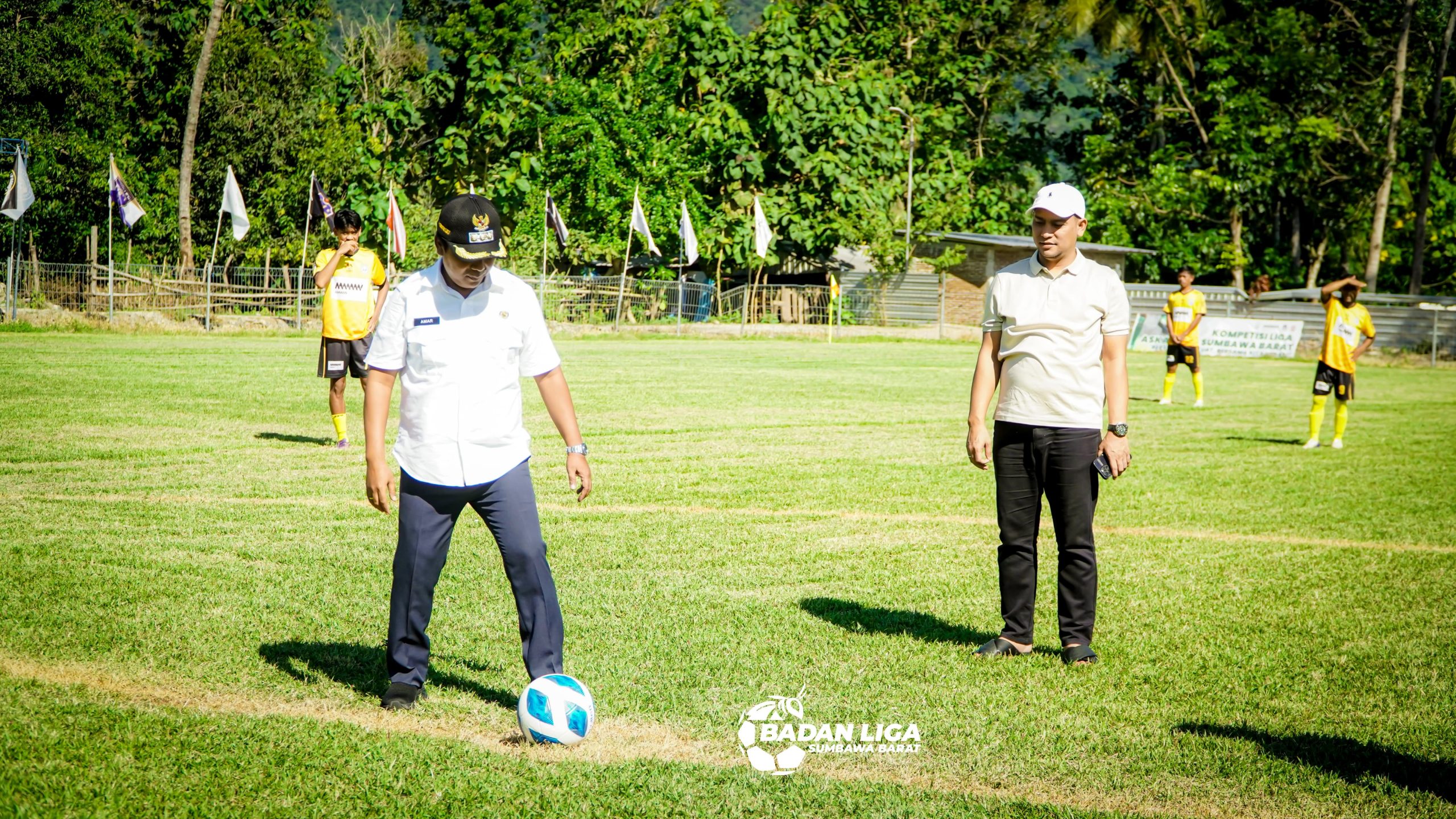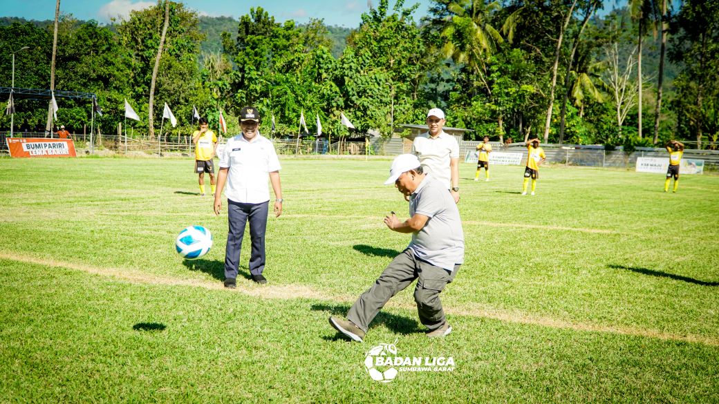 Brang Ene, alineasatu.net – Operan bola pendek Bupati Sumbawa Barat H. Amar Nurmansyah kepada Ketua Umum ASKAB PSSI Sumbawa Barat, HW Musyafirin menandai pembukaan liga 1 dan 2 sepak bola ASKAB KSB 2025.